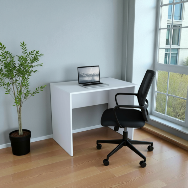 Модерно и функционално биро во бела боја, дизајнирано да внесе стил, практичност и уреден изглед во работниот или училишниот агол.
