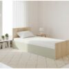 Модерен и функционален кревет во сонома / минт боја, дизајниран да внесе стил, практичност и уреден изглед во спалната соба.