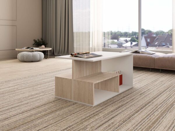 Со својот современ дизајн и внимателно избрани пропорции, таа лесно се вклопува во различни ентериери и нуди централен елемент со практична површина.