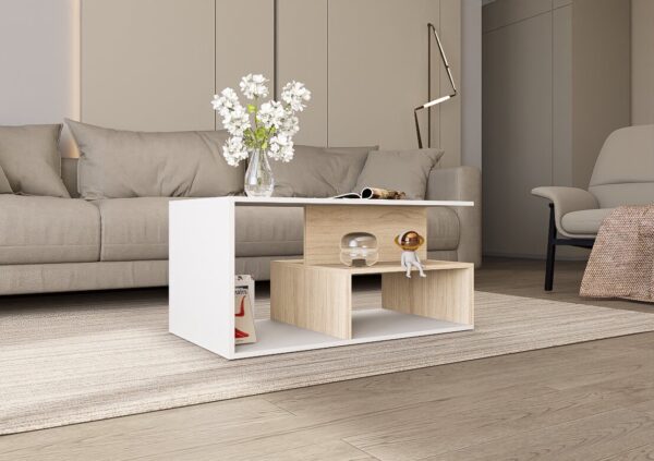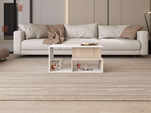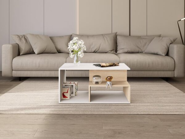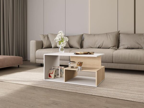 Идеална е за кафе, декорации и секојдневни предмети, при што создава впечаток на хармонија, функционалност и визуелна уредност во просторот.