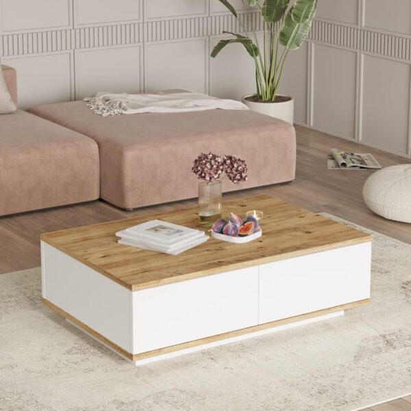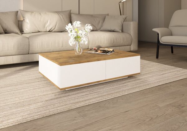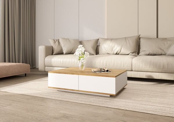 Со својот современ дизајн и внимателно избрани пропорции, таа лесно се вклопува во различни ентериери и нуди централен елемент со практична површина.