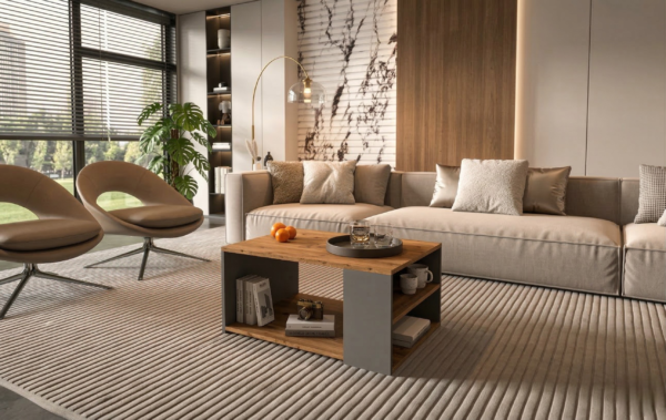 Со својот современ дизајн и внимателно избрани пропорции, таа лесно се вклопува во различни ентериери и нуди централен елемент со практична површина.