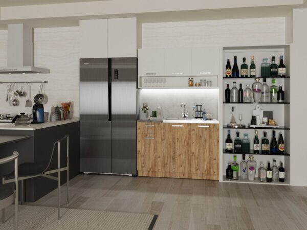 Идеален е за секојдневно готвење, складирање и организација, при што создава впечаток на хармонија, функционалност и визуелна уредност во просторот.