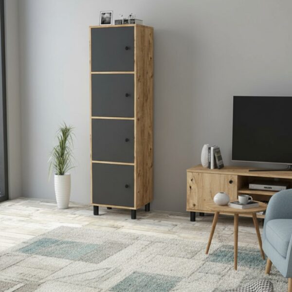 Со својот современ дизајн и внимателно избрани пропорции, тој лесно се вклопува во различни ентериери и нуди организирано складирање и чист изглед.