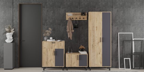 Модерен и функционален сет за претсобје во атлантик / антрацит боја, дизајниран да внесе стил, практичност и уреден изглед во влезниот простор.