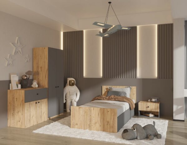 Модерен и функционален сет за спална соба во атлантик / антрацит боја, дизајниран да внесе стил, практичност и уреден изглед во спалната соба.