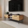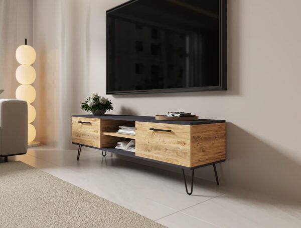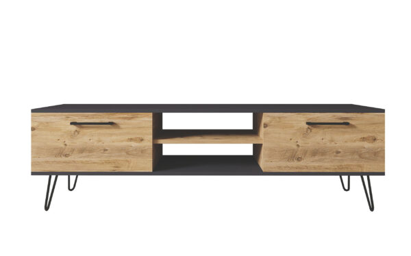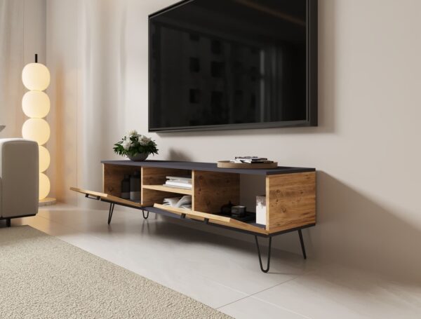 Модерна и функционална ТВ комода во атлантик / антрацит боја, дизајнирана да внесе стил, практичност и уреден изглед во дневниот простор.