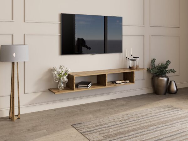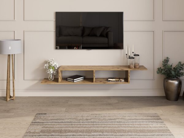 Идеална е за ТВ уред, мултимедија и дополнителни предмети, при што создава впечаток на хармонија, функционалност и визуелна уредност во просторот.